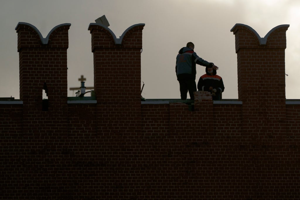 Falling scaffolding broke off one of the “teeth” on the top of the Kremlin wall on Friday, prompting Russian authorities to seal off Red Square