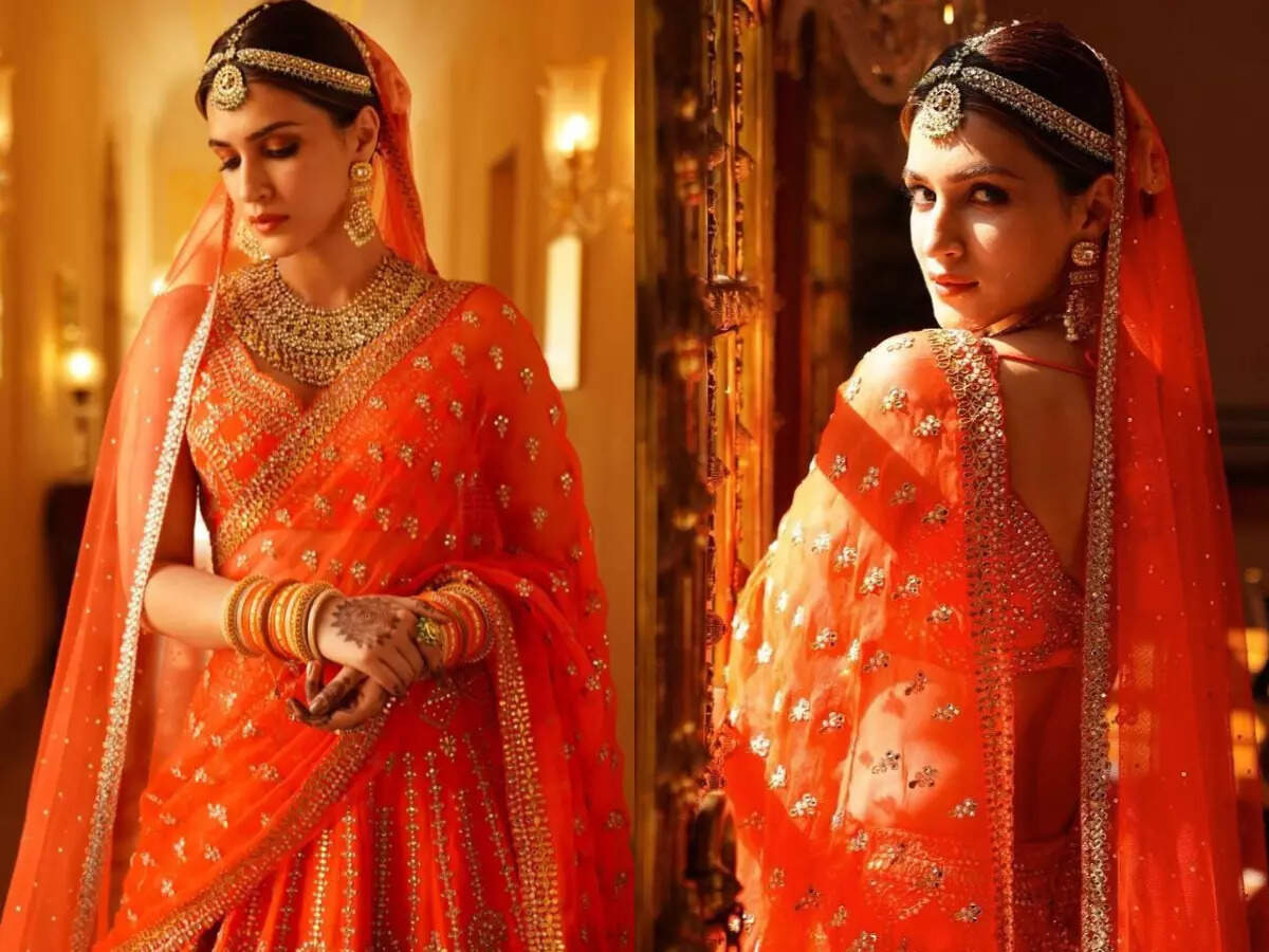 Kriti stunned in an orange lehenga by ace designer Seema Gujral.
