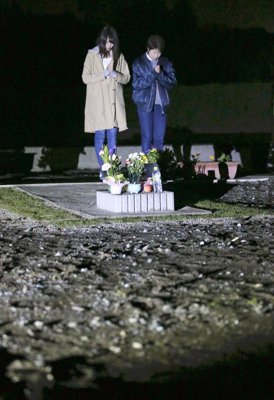 KUMAMOTO -- Bereaved friends and others commemorated the dead on Monday, the second anniversary of the main tremor of the Kumamoto Earthquake.