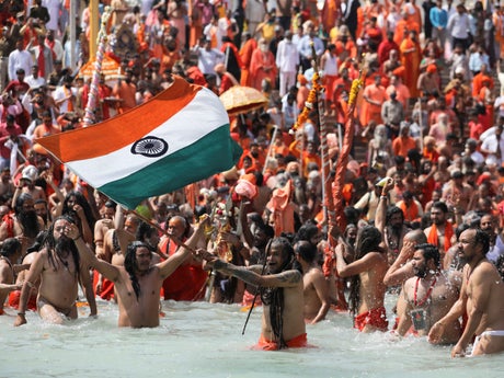 Those taking part in the pilgrimage to the Ganges believe washing in its waters cleanses them of their sins and can break the cycle of life, death and reincarnation.