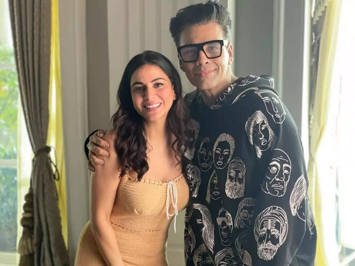 Shraddha Arya has been grinning from ear to ear as she has shot for something special for Koffee With Karan host Karan Johar. The ecstatic actress posted new photos with the ace Bollywood director today (July 29).