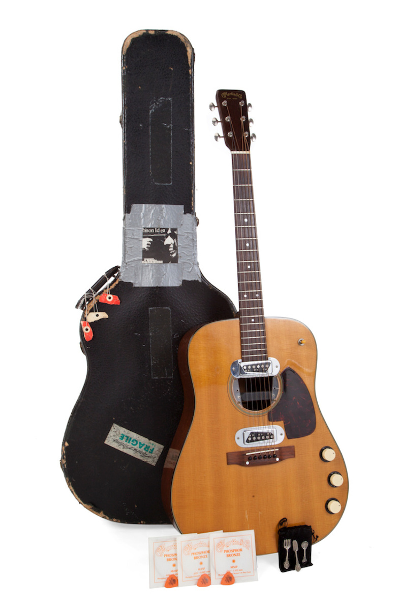 Julien's Auctions said on Monday the 1959 Martin D-18E guitar that Cobain played for the 1993 live taping is going up for sale, The guitar comes with battered case, whose storage compartment contains a small suede bag where the musician is said to have stashed the heroin he was addicted to in his final years.