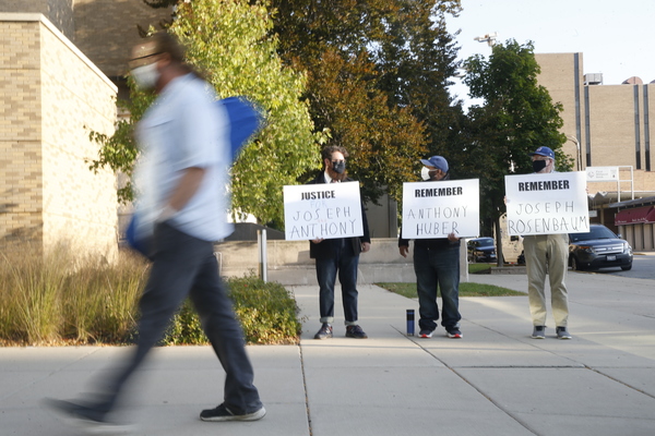 Rittenhouse then ran before someone knocked off his hat, and he tripped and fell, prosecutors wrote. A man carrying a skateboard and later identified as Anthony Huber, 26, of Silver Lake, approached Rittenhouse as he was still on his back, prosecutors wrote. Huber tried to grab the gun as the skateboard "(made) contact" with Rittenhouse's shoulder before the alleged gunman fired one shot, and Huber collapsed and died, prosecutors alleged.