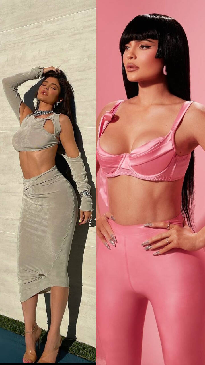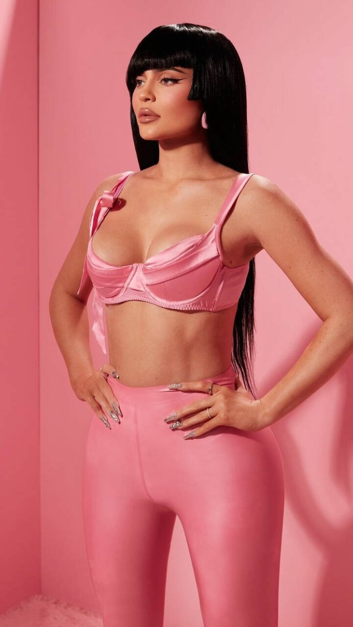 With her body-hugging pink outfit styled with those edgy bangs and matching hoops, Kylie looked flawless while flaunting her toned body.
