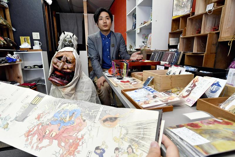 Junya Kono, a lecturer at Kyoto Saga University of Arts, has been helping the Taishogun shopping district since his days as a graduate student. "Yokai have many charms; they're sometimes scary but also humorous," said the 36-year-old, himself a fan of "GeGeGe no Kitaro" and other yokai-themed works by manga artist Shigeru Mizuki. "It's so rewarding that I can help boost the community by showcasing my favorite yokai."