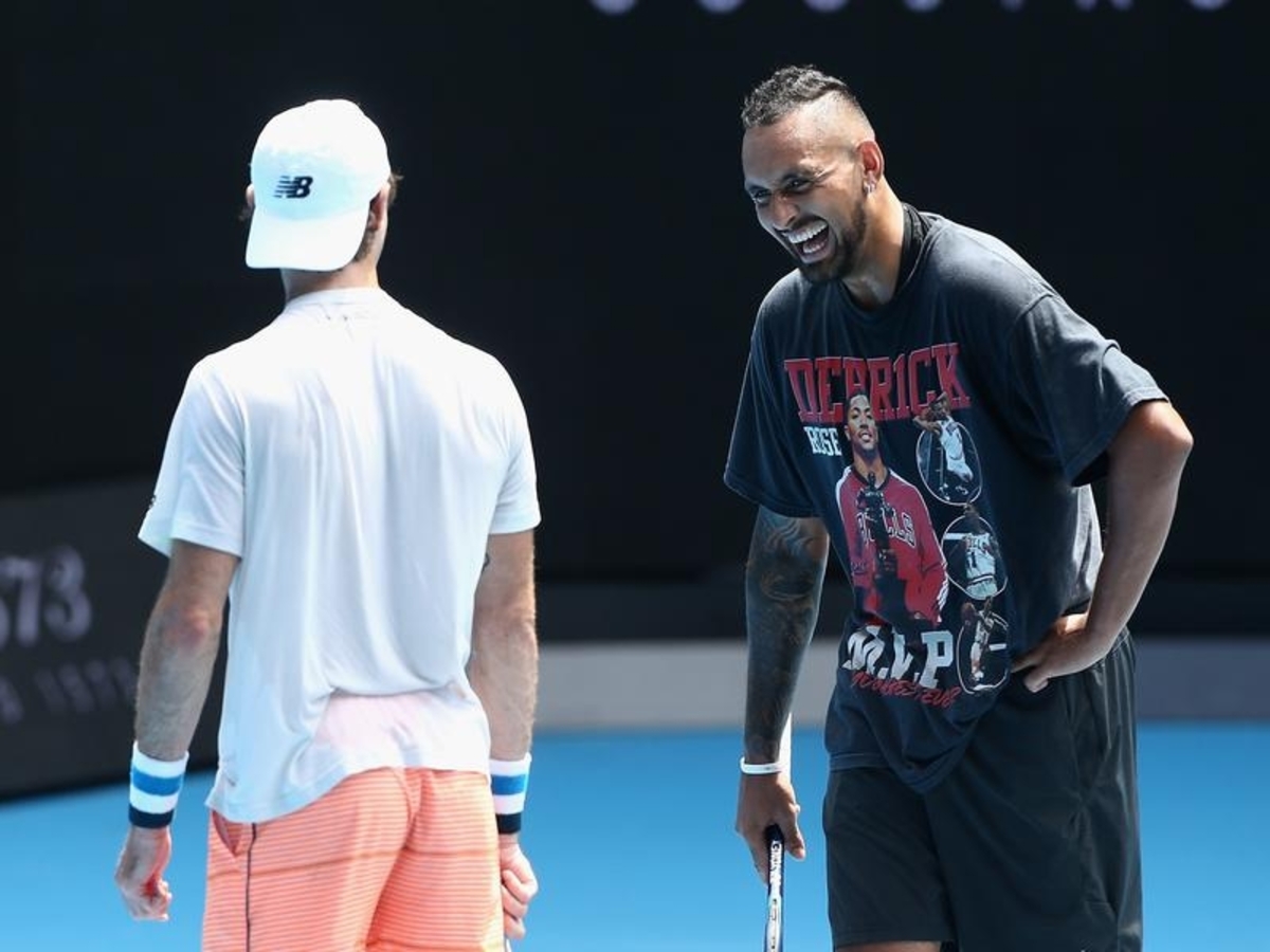 He played a set in practice on Margaret Court Arena on Saturday with Jordan Thompson, who also spent the past month with Kyrgios in Canberra.
