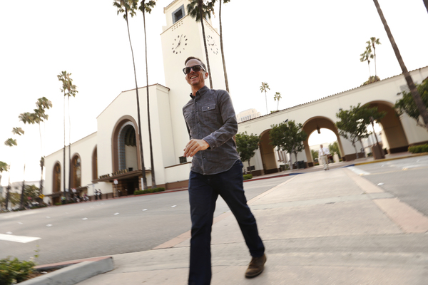 "This is one of my favorite places," he said. "I come here at night if I'm having a bad day. It has a sense for me of what old missions would be like, that old architecture of Southern California. It feels good. People going places. I'd like to have more films shot here, but I wouldn't want it to lose its magic for me."