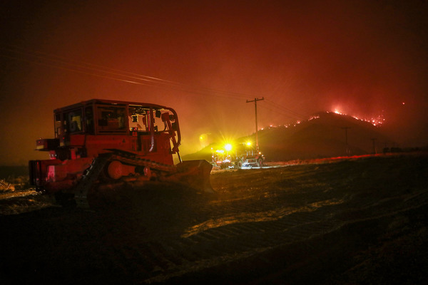 Containment lines dug with bulldozers were also laid down Thursday to further protect the community. No homes or structures in the northern foothills have been burned.