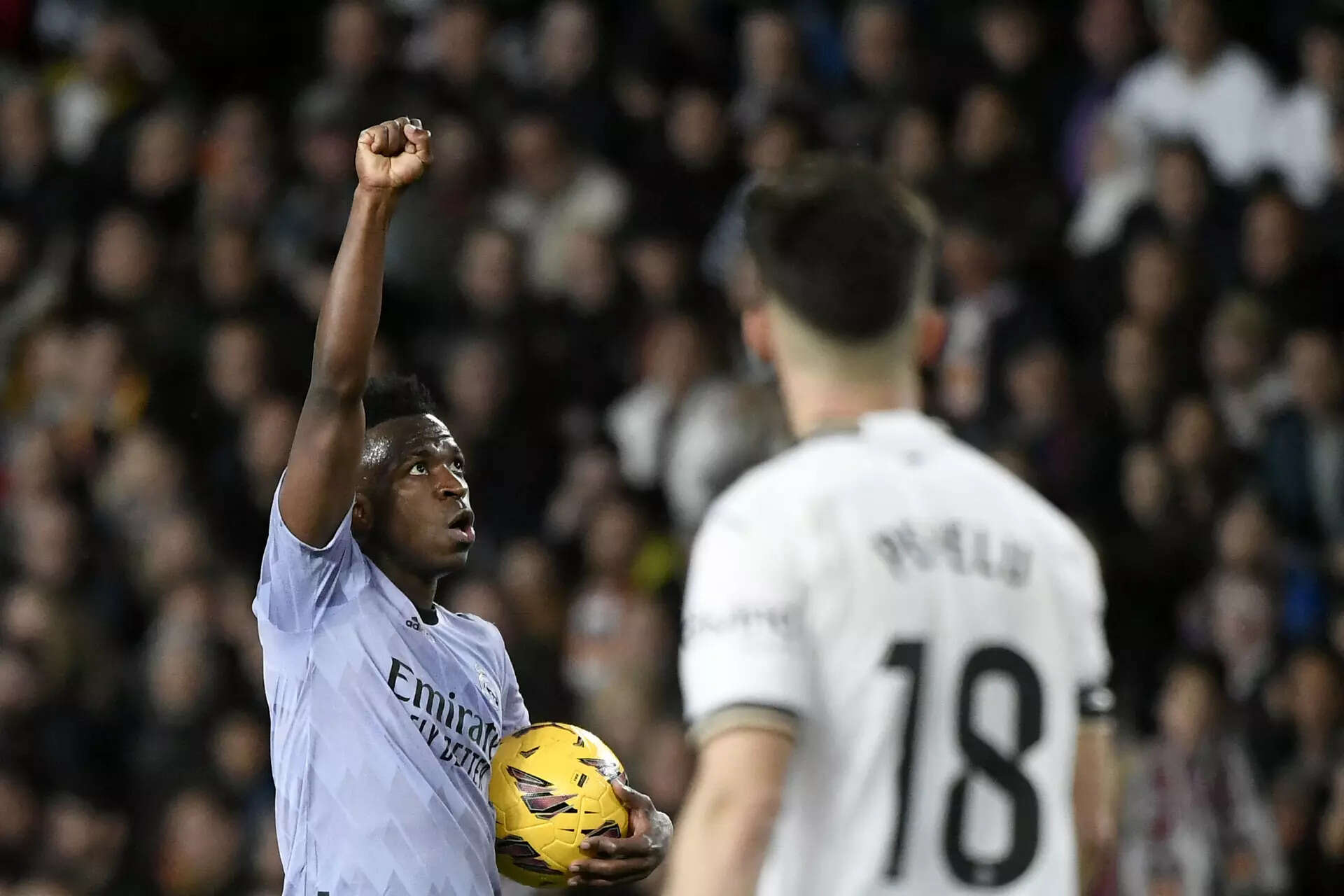The Brazilian winger returned to the Mestalla stadium, where he was subjected to racial abuse last year. Throughout the match, Vinicius defiantly stared at the crowd, who jeered and whistled at him.