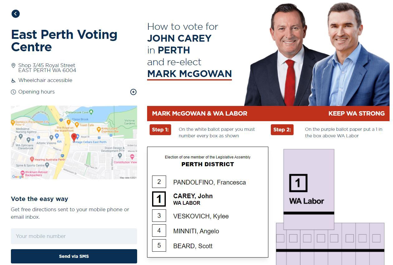 "The VoteWA.com.au website is an easy way for people to access how to vote material for WA Labor candidates, and to find their nearest early voting centre," a party spokesperson said.