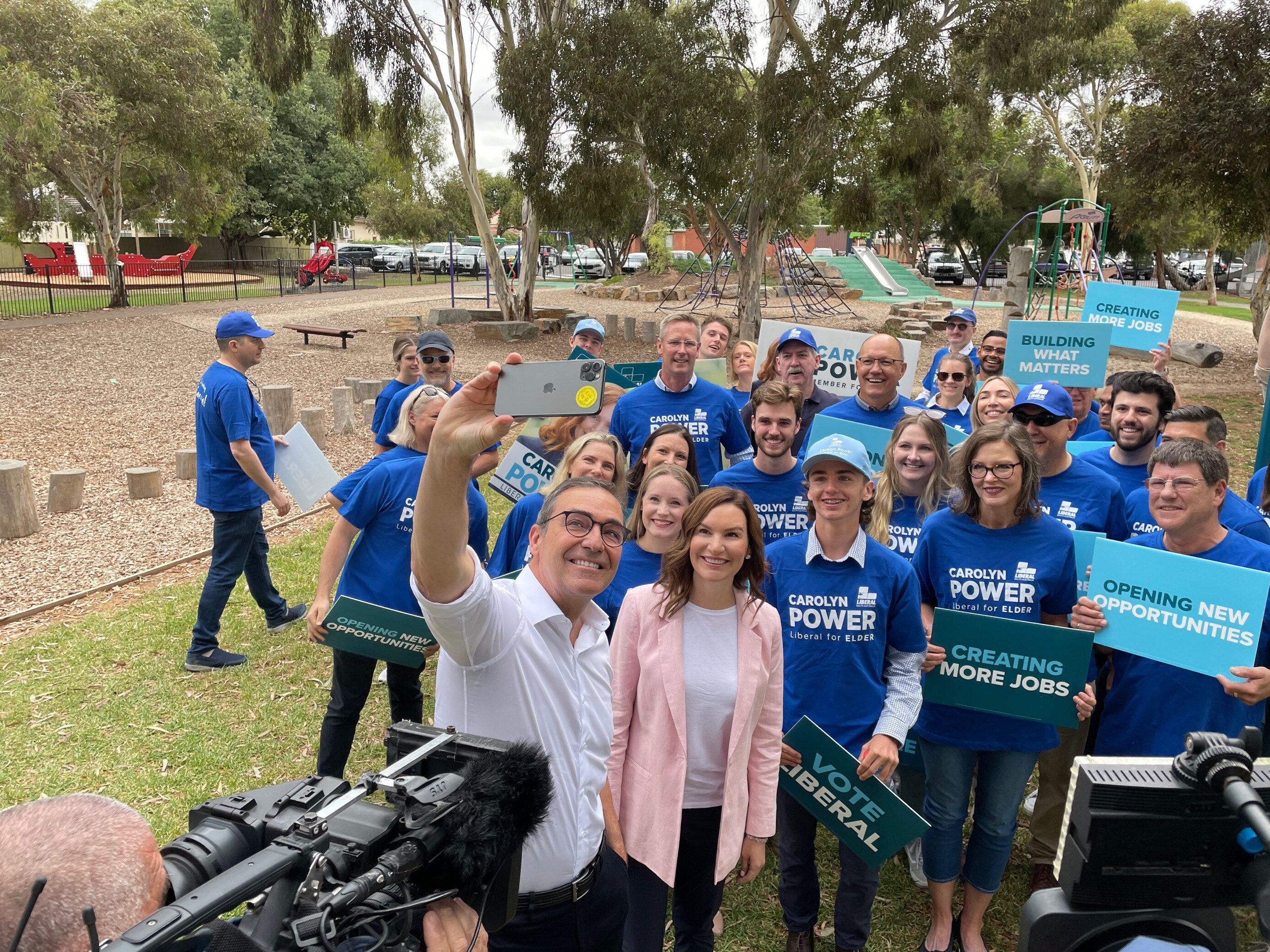 On the same day Labor held a large launch event, Mr Marshall held a series of smaller events in marginal electorates across Adelaide which were streamed live on social media.