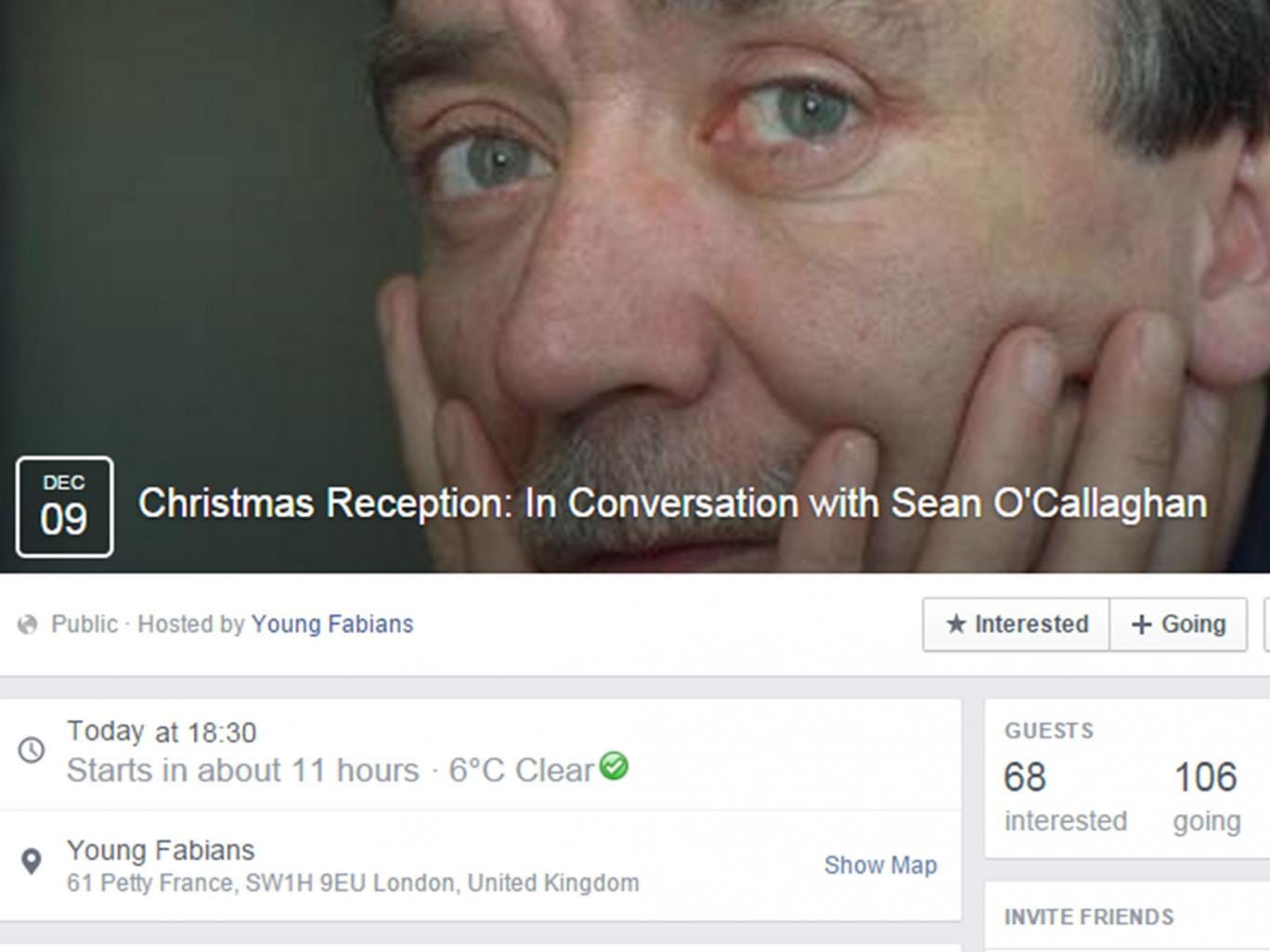 The Fabian Society, the British socialist organization that founded Labour in 1900 and remains closely linked to the party, invited Sean O'Callaghan, to be keynote speaker at its youth wing's event to be held at the Fabian Society headquarters in Westminster this evening.