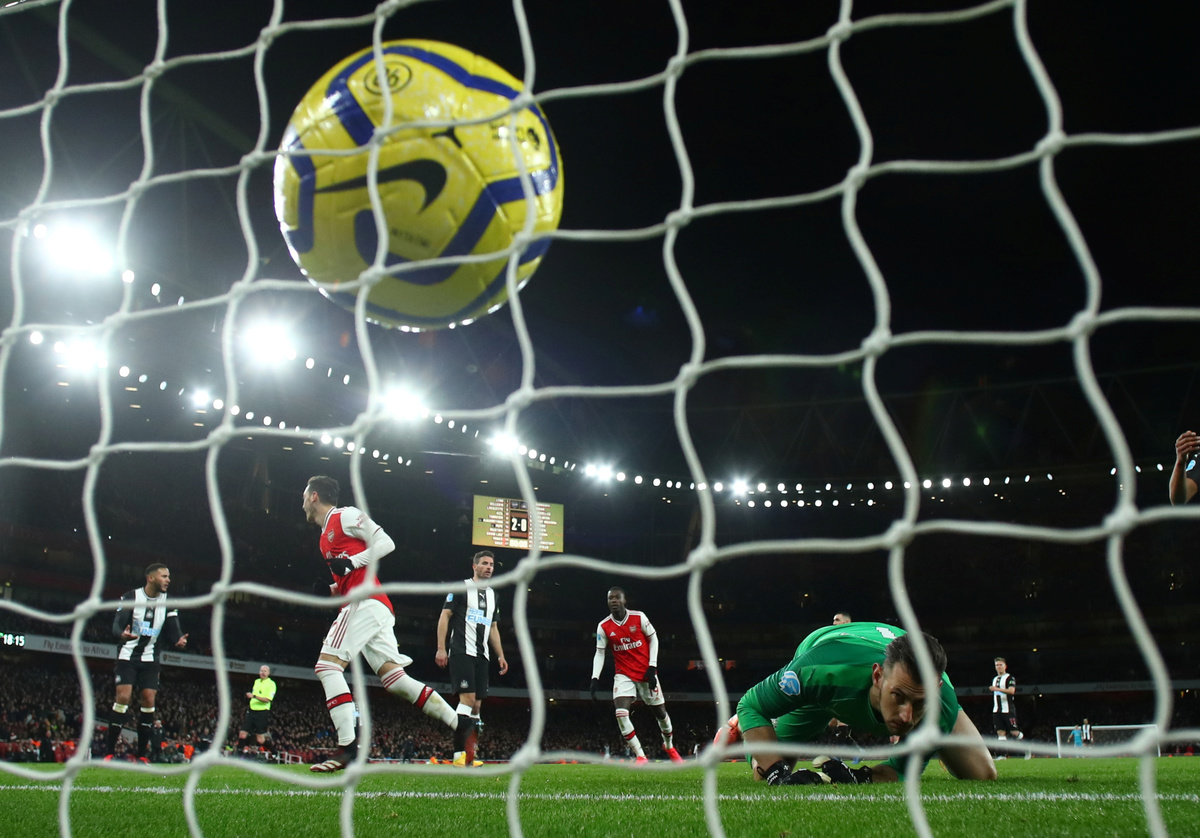 But Mesut Ozil put the game beyond the Magpies with his first goal of the season with a tap-in after a flowing Arsenal move involving 35 passes and touches from all 11 players -- the most passes for any goal in the league this season.