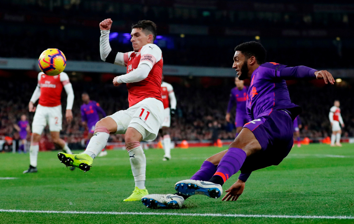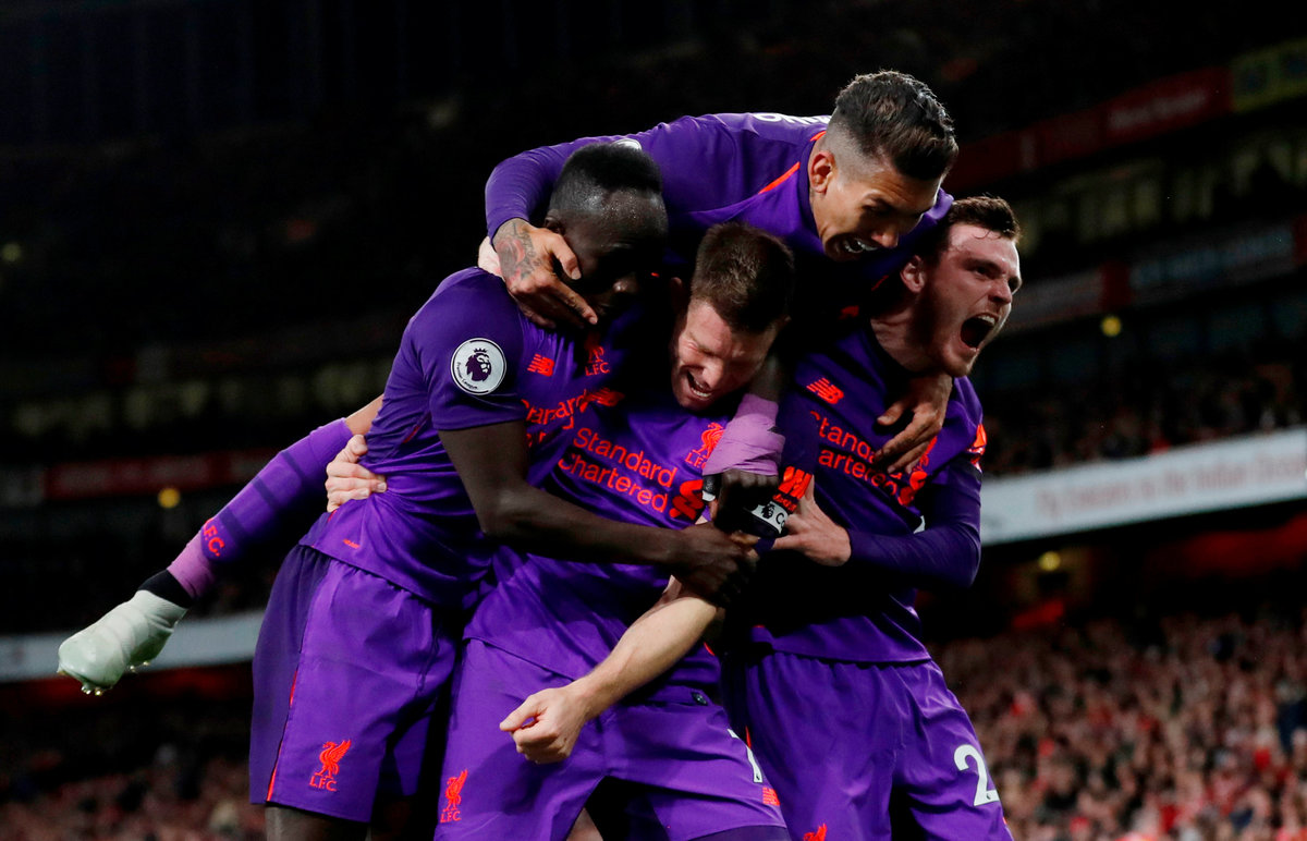 Soccer Football - Premier League - Arsenal v Liverpool - Emirates Stadium, London, Britain - November 3, 2018 Liverpool's James Milner scores their first goal past Arsenal's Bernd Leno Action Images via Reuters/Matthew Childs Soccer Football - Premier League - Arsenal v Liverpool - Emirates Stadium, London, Britain - November 3, 2018 Arsenal's Alexandre Lacazette in action with Liverpool's Sadio Mane Action Images via Reuters/Matthew Childs Soccer Football - Premier League - Arsenal v Liverpool - Emirates Stadium, London, Britain - November 3, 2018 Liverpool's Alisson and Andrew Robertson in action with Arsenal's Pierre-Emerick Aubameyang Action Images via Reuters/Matthew Childs Soccer Football - Premier League - Arsenal v Liverpool - Emirates Stadium, London, Britain - November 3, 2018 Arsenal's Alexandre Lacazette in action before scoring their first goal REUTERS/David Klein Soccer Football - Premier League - Arsenal v Liverpool - Emirates Stadium, London, Britain - November 3, 2018 Liverpool's James Milner celebrates with Sadio Mane, Roberto Firmino and Andrew Robertson after scoring their first goal Action Images via Reuters/Matthew Childs Soccer Football - Premier League - Arsenal v Liverpool - Emirates Stadium, London, Britain - November 3, 2018 Liverpool's Sadio Mane in action with Arsenal's Henrikh Mkhitaryan Action Images via Reuters/Matthew Childs Soccer Football - Premier League - Arsenal v Liverpool - Emirates Stadium, London, Britain - November 3, 2018 Arsenal's Lucas Torreira in action with Liverpool's Joe Gomez Action Images via Reuters/Matthew Childs