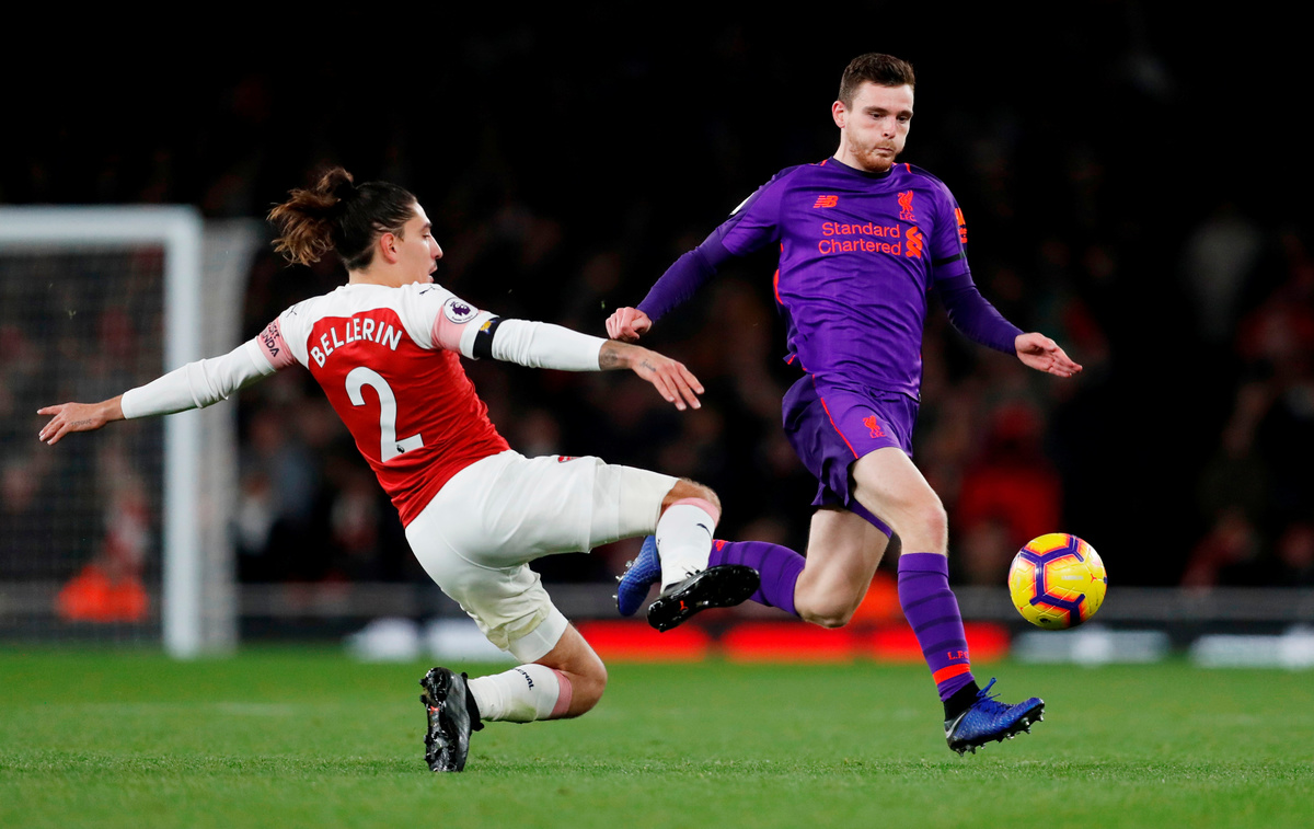 Soccer Football - Premier League - Arsenal v Liverpool - Emirates Stadium, London, Britain - November 3, 2018 Liverpool's Andrew Robertson in action with Arsenal's Hector Bellerin Action Images via Reuters/Matthew Childs