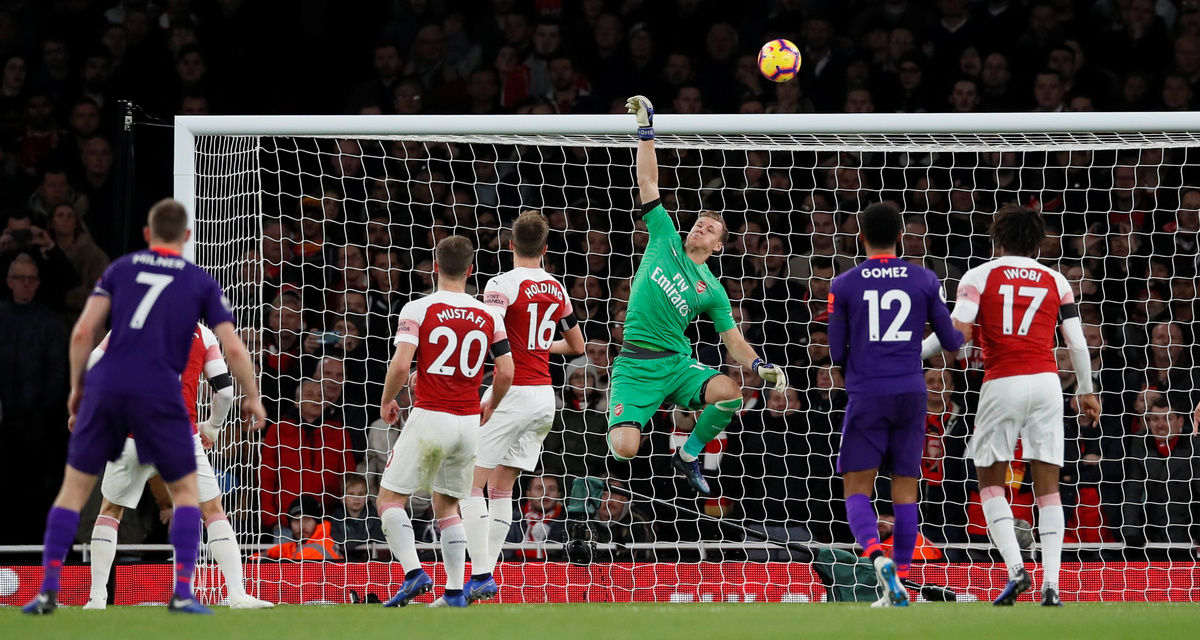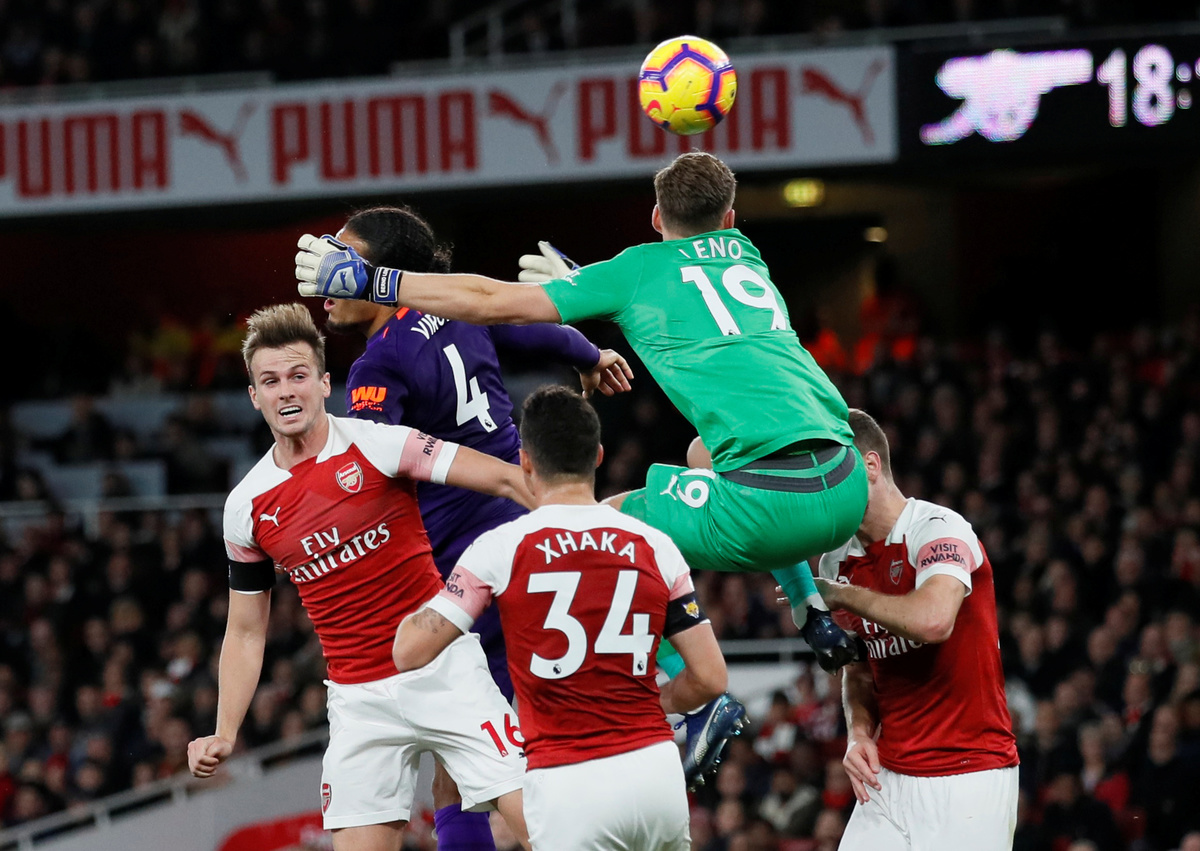 Soccer Football - Premier League - Arsenal v Liverpool - Emirates Stadium, London, Britain - November 3, 2018 Arsenal's Bernd Leno saves a header from Liverpool's Virgil van Dijk (not pictured) REUTERS/David Klein