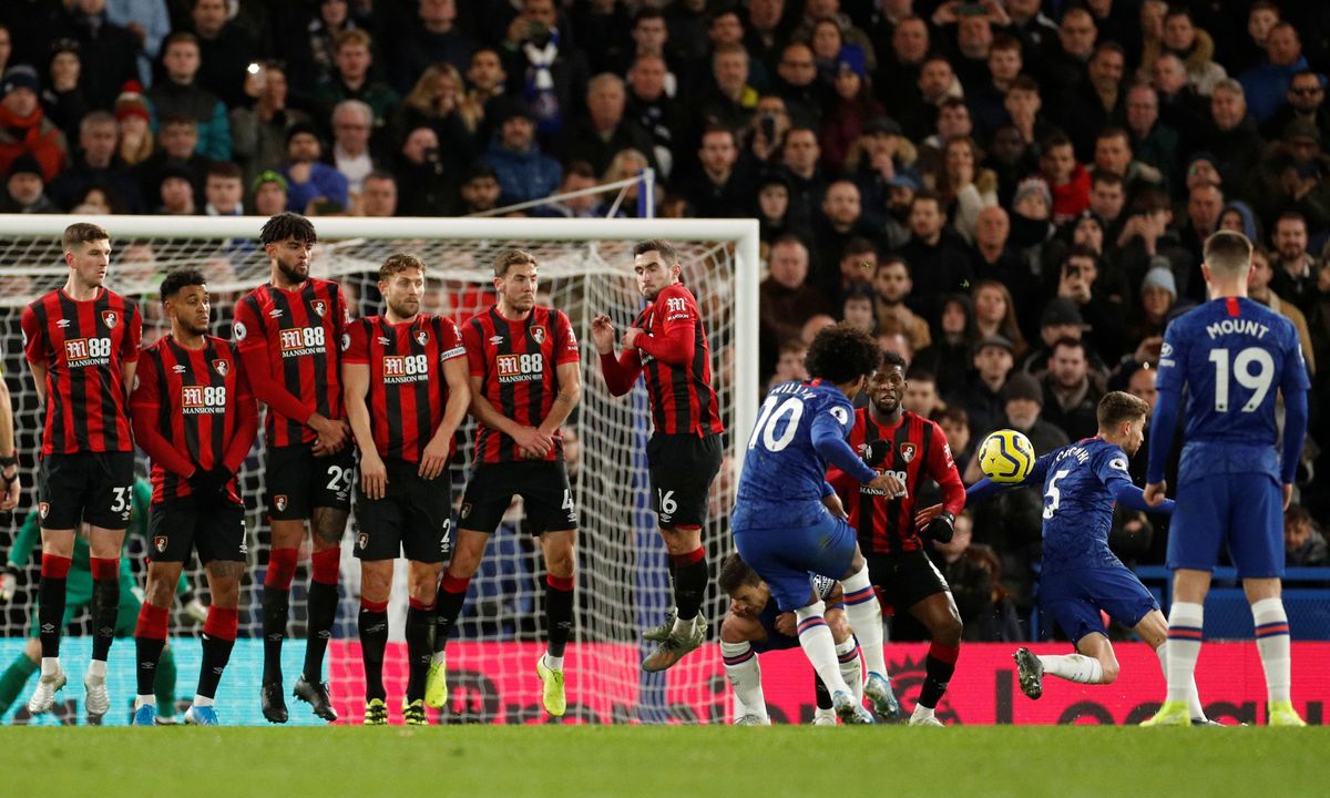 Soccer Football - Premier League - Chelsea v AFC Bournemouth - Stamford Bridge, London, Britain - December 14, 2019 Chelsea's Willian shoots at goal from a free kick Action Images via Reuters/John Sibley