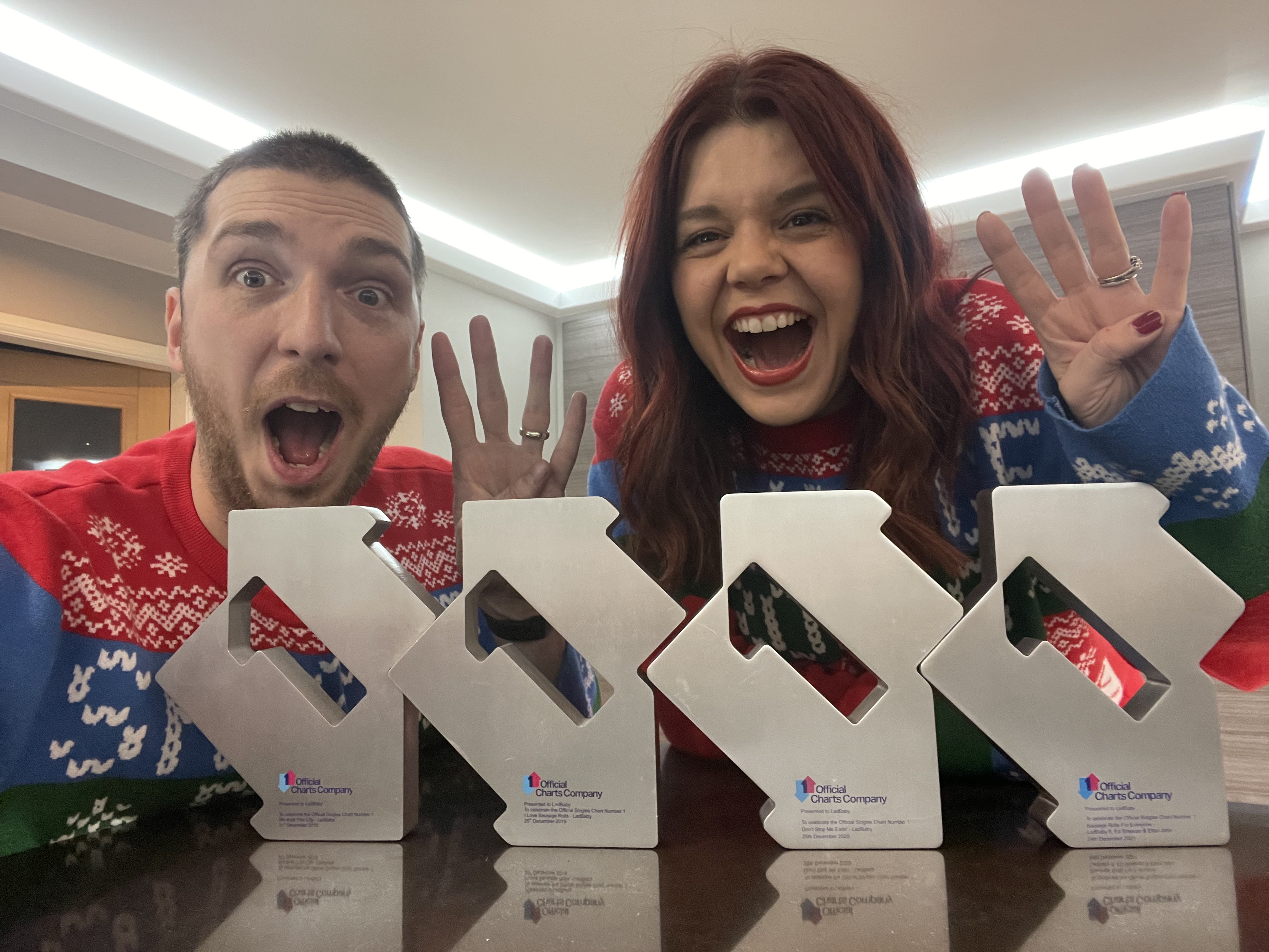 Martin Talbot, chief executive of the Official Charts Company added: “Huge congratulations to Ladbaby, Ed Sheeran and Sir Elton John for their achievement this year, not least to Mark and Roxanne of Ladbaby in becoming the first act in history to record four consecutive official Christmas number ones.