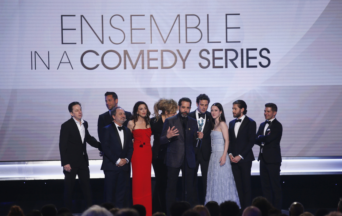 In television, Amazon.com Inc series "The Marvelous Mrs. Maisel" swept the comedy honors, winning best ensemble as well as best actor and actress for stars Tony Shalhoub and Rachel Brosnahan.