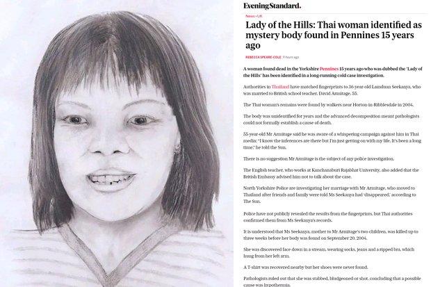 Authorities in Thailand have matched fingerprints taken from the body to 36-year-old Lamduan Seekanya, who was married to British school teacher, David Armitage, 55, according to the London Evening Standard.
