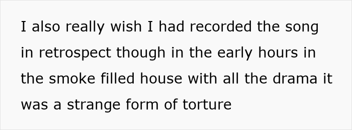 Just when OP thought peace had been restored, her friend’s partner appeared next to her bed singing an improvised song directly into her face. “British girl so nice to have you here,” she crooned, complete with guitar accompaniment. It was equal parts creepy and hilarious, but OP, exhausted by now, began plotting an early escape to the nearest train station.