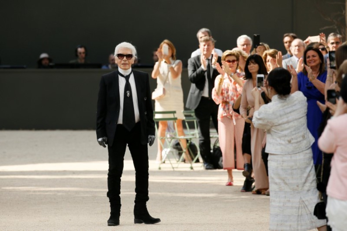 German designer Karl Lagerfeld appears at the end of his Haute Couture Fall/Winter 2017/2018 collection for fashion house Chanel in Paris, France, July 4, 2017. REUTERS/Gonzalo FuentesA model presents a creation by German designer Karl Lagerfeld as part of his Haute Couture Fall/Winter 2017/2018 collection for fashion house Chanel in Paris, France, July 4, 2017. REUTERS/Gonzalo FuentesActress Joana Preiss posses during a photocell before the Chanel Fall/Winter 2017/2018 collection in Paris, France, July 4, 2017. REUTERS/Gonzalo FuentesActress Pom Klementieff poses during a photocall before the Chanel Haute Couture Fall/Winter 2017/2018 collection show in Paris, France, July 4, 2017. REUTERS/Gonzalo FuentesActress Alma Jodorowsky poses during a photocall before the Chanel Haute Couture Fall/Winter 2017/2018 collection show in Paris, France, July 4, 2017. REUTERS/Gonzalo FuentesA model presents a creation by German designer Karl Lagerfeld as part of his Haute Couture Fall/Winter 2017/2018 collection for fashion house Chanel in Paris, France, July 4, 2017. REUTERS/Gonzalo FuentesA model presents a creation by German designer Karl Lagerfeld as part of his Haute Couture Fall/Winter 2017/2018 collection for fashion house Chanel in Paris, France, July 4, 2017. REUTERS/Gonzalo FuentesA model presents a creation by German designer Karl Lagerfeld as part of his Haute Couture Fall/Winter 2017/2018 collection for fashion house Chanel in Paris, France, July 4, 2017. REUTERS/Gonzalo FuentesA model presents a creation by German designer Karl Lagerfeld as part of his Haute Couture Fall/Winter 2017/2018 collection for fashion house Chanel in Paris, France, July 4, 2017. REUTERS/Gonzalo FuentesA model presents a creation by German designer Karl Lagerfeld as part of his Haute Couture Fall/Winter 2017/2018 collection for fashion house Chanel in Paris, France, July 4, 2017. REUTERS/Gonzalo FuentesA model presents a creation by German designer Karl Lagerfeld as part of his Haute Couture Fall/Winter 2017/2018 collection for fashion house Chanel, with a giant replica of the Eiffel tower at the Grand Palais exhibition hall in Paris, France, July 4, 2017. REUTERS/Gonzalo FuentesModels present creations by German designer Karl Lagerfeld as part of his Haute Couture Fall/Winter 2017/2018 collection for fashion house Chanel in Paris, France, July 4, 2017. REUTERS/Gonzalo Fuentes