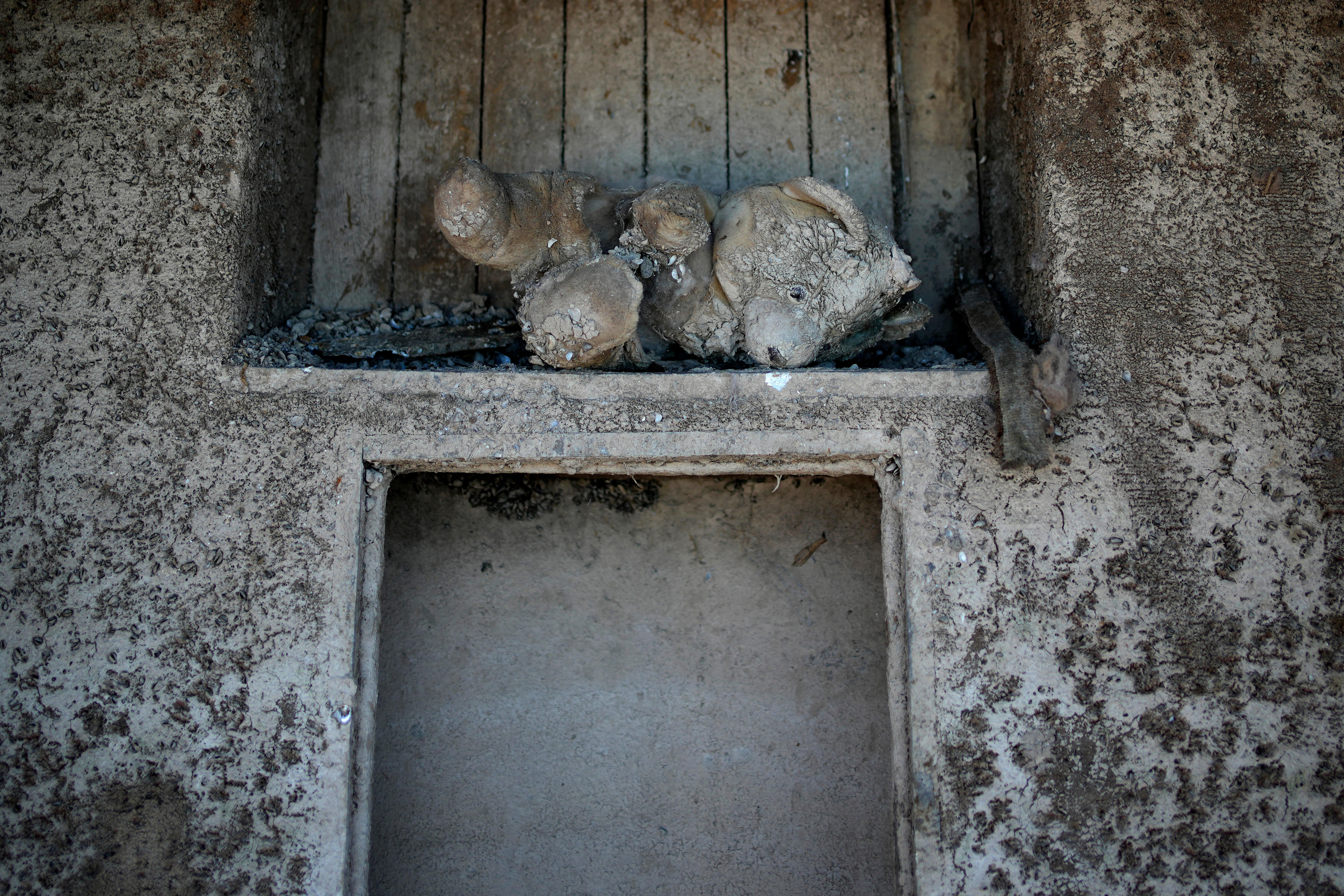 A buoy that once marked a no-boat-zone sits in the dirt, not a drop of water anywhere in view.