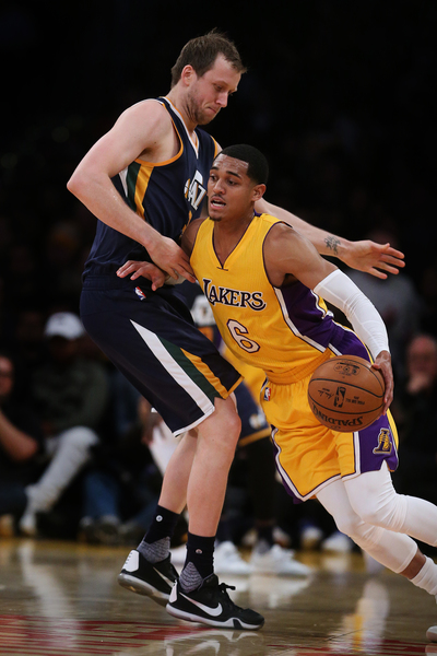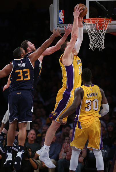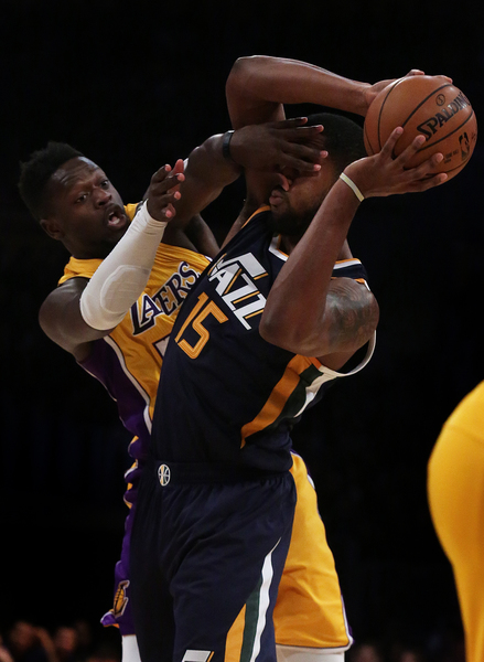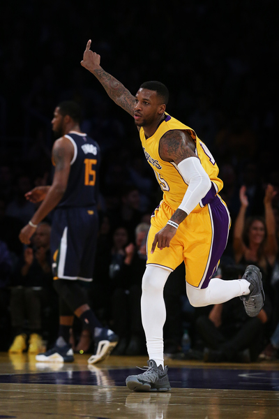 The result was point guard D'Angelo Russell attempting a deep, contested three-pointer. The shot fell short of the rim, only grazing the bottom of the net, and the clock ran out on the Lakers in a 102-100 loss to the Jazz at Staples Center.