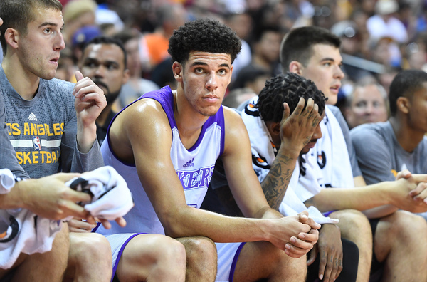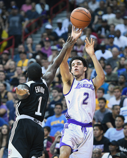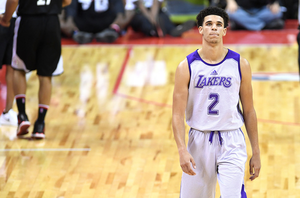 LAS VEGAS _ Less than half a minute into his first game as a Los Angeles Laker, Lonzo Ball provided a tantalizing glimpse of the future.
