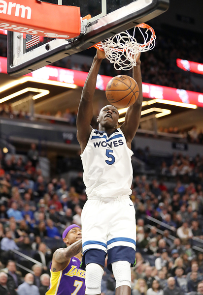 With the help of a plucky second unit that outplayed Minnesota's second unit, the Lakers led for all of the second quarter, most of the third and much of the fourth. But with 8:19 left in the game, the Timberwolves took their first lead of the fourth. Gorgui Dieng hit a 15-foot jumper to give the Timberwolves a 98-97 lead.