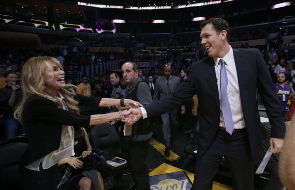 The Lakers found a way to get Nick Young into the starting lineup, playing him at shooting guard along with point guard Russell, small forward Luol Deng, power forward Randle and center Timofey Mozgov. Walton played coy until just before the game began on his lineup, citing heated discussions among his assistant coaches about the right set. Walton said he was considering three different groups.