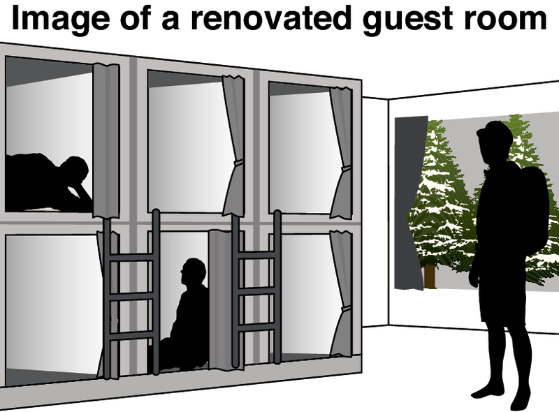 The renovation is expected to cost about 60 million yen. The rooms could open on a trial basis as early as October, and are expected to cost less per night than the usual 9,000 yen per person that includes meals.