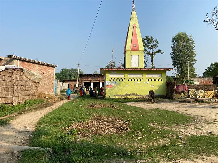 The Muslims live in a cluster about 100 metres away from Ajay Mishra’s house. In the midst of this cluster is a temple, opposite which is the mosque. Newslaundry was told there are no Hindu-Muslim tensions here, and both “Teni Maharaj” and “Monu Bhaiya” are loved by both communities.