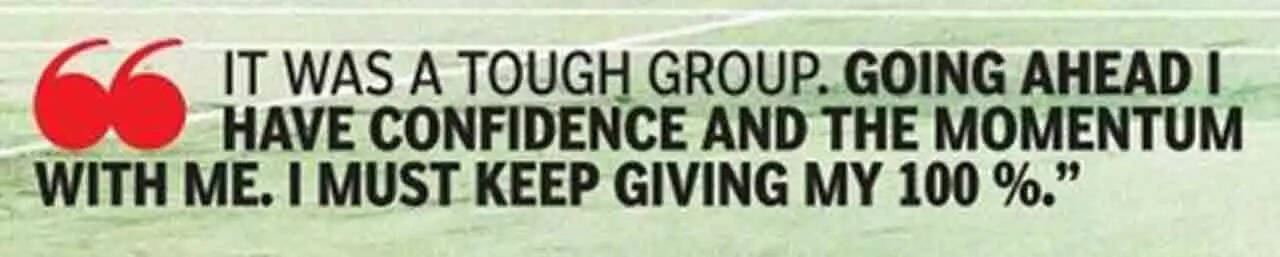 "I took time to settle down in the first game and after that tried to stay one or two points in the lead. It worked. In the second, I was in full control," Sen said later. "It was a tough group. Going ahead I have confidence and the momentum with me. I must keep giving my 100 %."