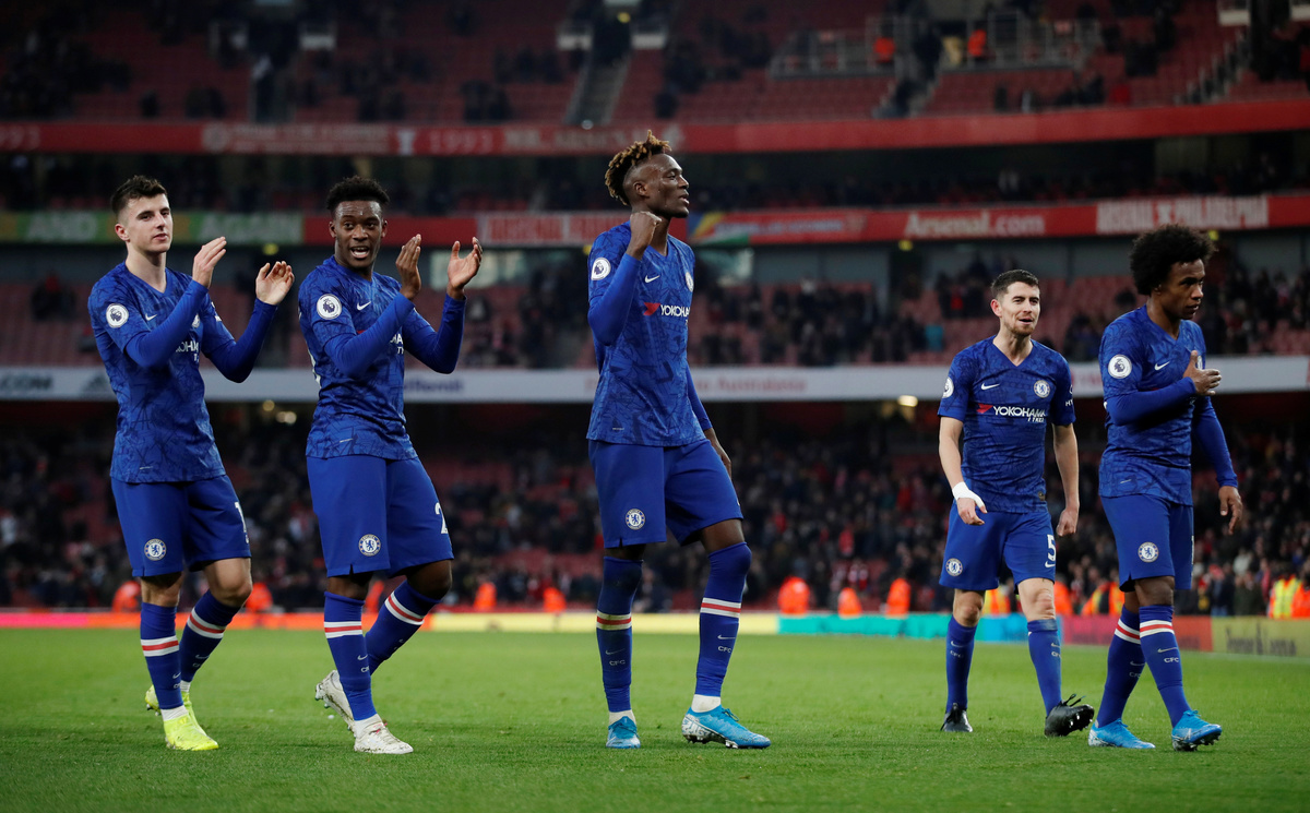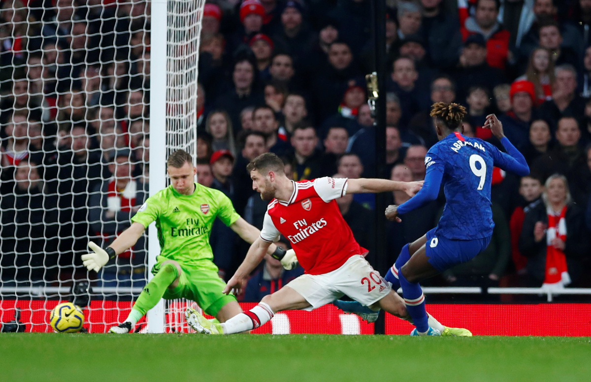 Soccer Football - Premier League - Arsenal v Chelsea - Emirates Stadium, London, Britain - December 29, 2019 Arsenal's Bernd Leno in action before Jorginho scored Chelsea's first goal Action Images via Reuters/Matthew Childs Soccer Football - Premier League - Arsenal v Chelsea - Emirates Stadium, London, Britain - December 29, 2019 Chelsea's Tammy Abraham celebrates after the match with Callum Hudson-Odoi Action Images via Reuters/Matthew Childs Soccer Football - Premier League - Arsenal v Chelsea - Emirates Stadium, London, Britain - December 29, 2019 Arsenal's Bukayo Saka and teammates look dejected after the match REUTERS/Eddie Keogh Soccer Football - Premier League - Arsenal v Chelsea - Emirates Stadium, London, Britain - December 29, 2019 Chelsea's Tammy Abraham celebrates after the match with Callum Hudson-Odoi Action Images via Reuters/Matthew ChildsSoccer Football - Premier League - Arsenal v Chelsea - Emirates Stadium, London, Britain - December 29, 2019 Chelsea's Tammy Abraham celebrates scoring their second goal Action Images via Reuters/Matthew Childs Soccer Football - Premier League - Arsenal v Chelsea - Emirates Stadium, London, Britain - December 29, 2019 Chelsea's Tammy Abraham scores their second goal REUTERS/Eddie Keogh
