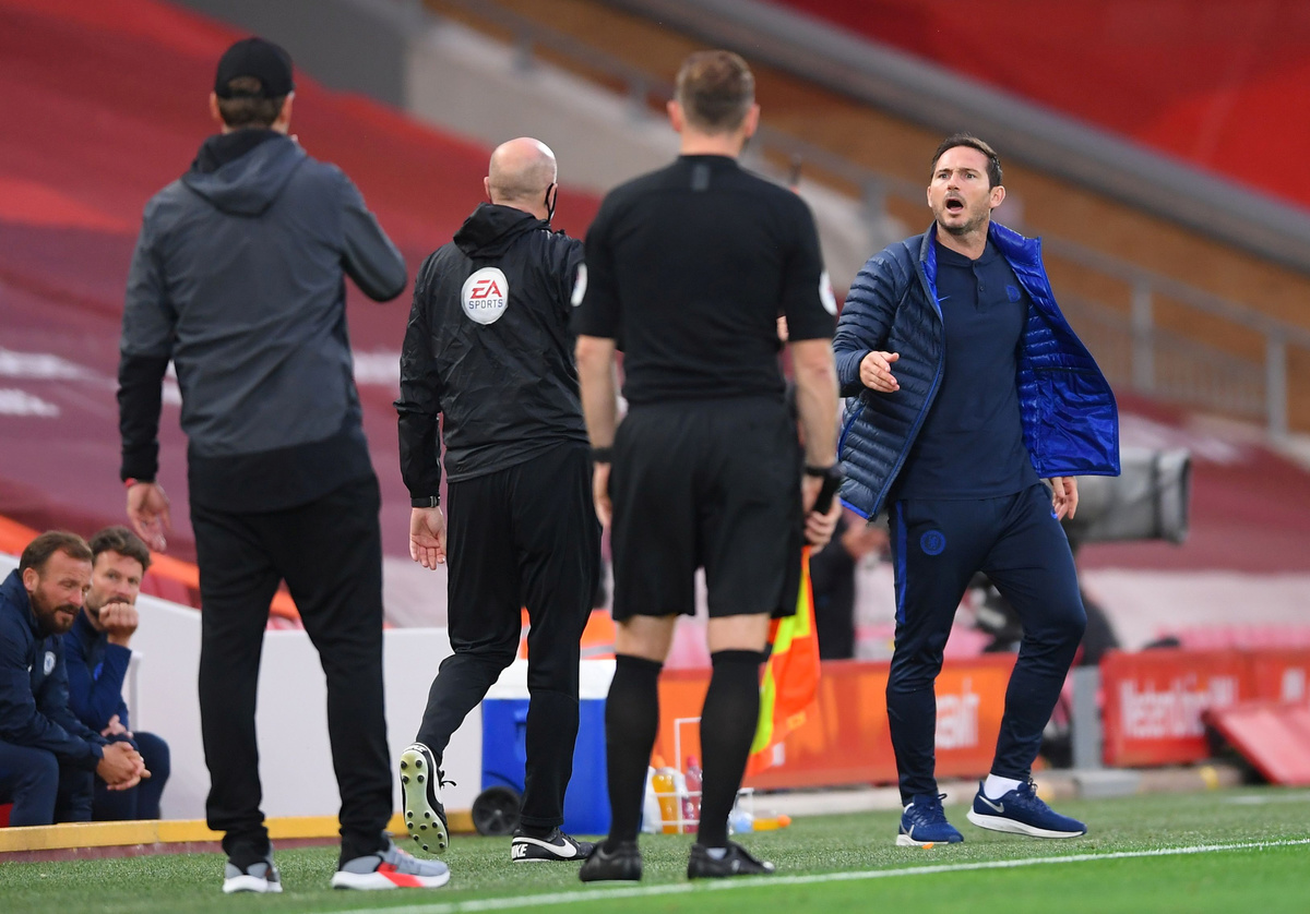 Visuals showed a visibly agitated Lampard gesturing and yelling at Klopp and the Liverpool dugout when the home side won a free kick during Wednesday's 5-3 victory.