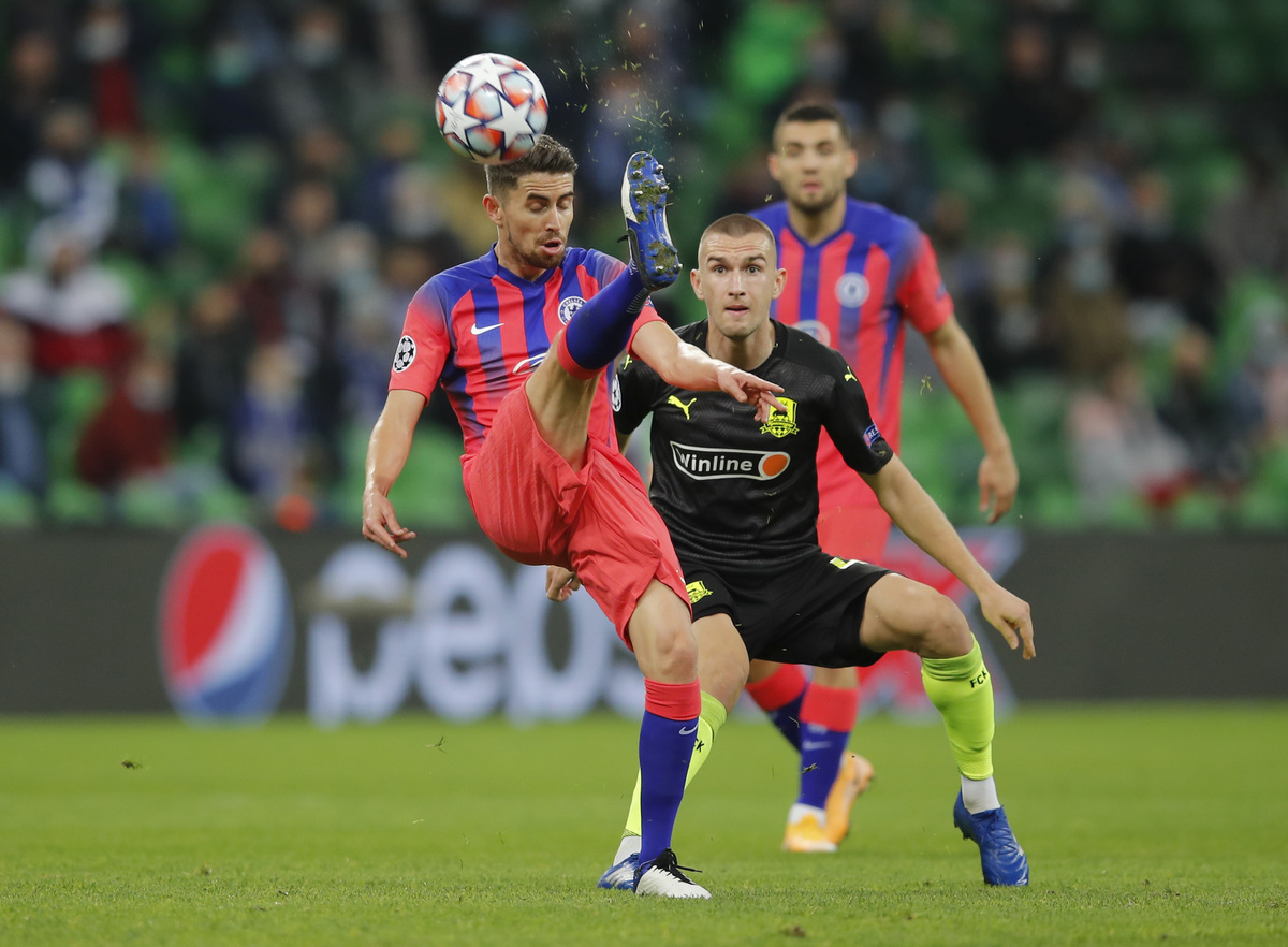 Jorginho, who missed from the spot against Liverpool in the Premier League last month, hit the post with a penalty in the first half with the game goalless in Krasnodar on Wednesday.