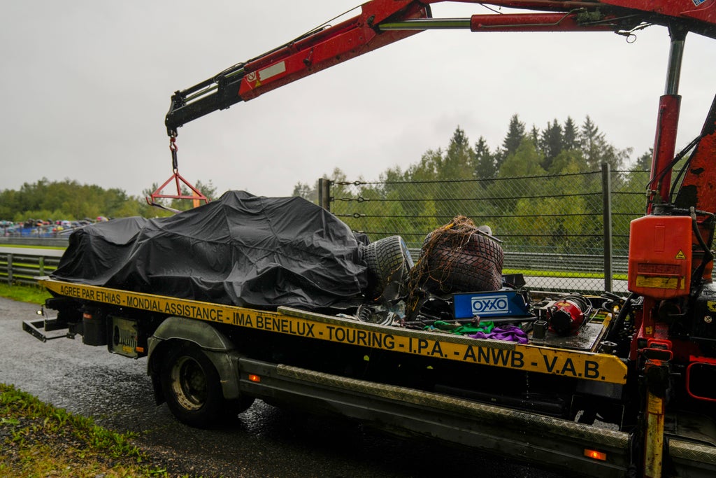 Norris emerged unassisted from his wrecked cockpit, holding his lower left arm as he was taken to the on-track medical centre and then 20 miles away to a hospital in Verviers for an X-ray on his elbow.