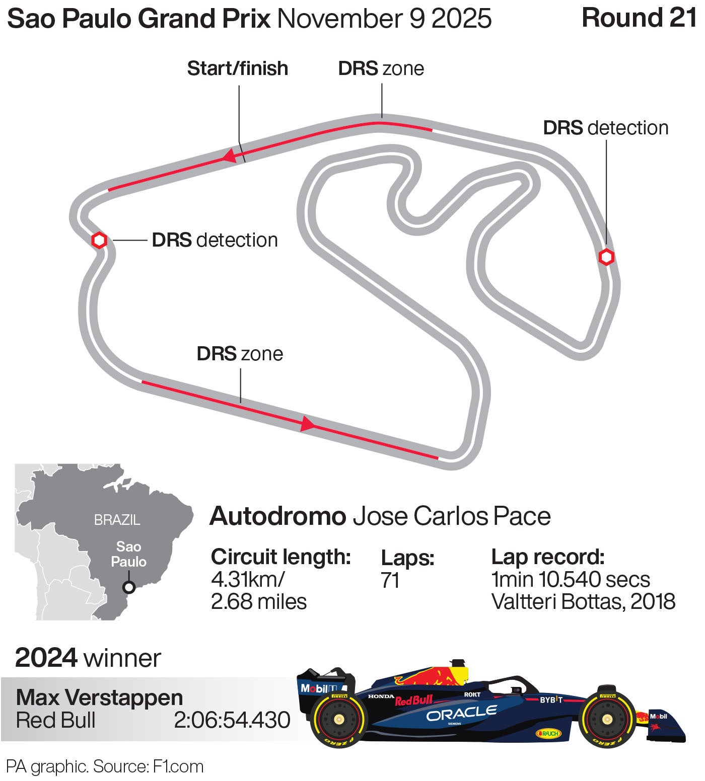 Piastri then qualified only fourth for Sunday’s main event, and in another boost to Norris, Max Verstappen – 39 points behind the British driver in the title standings – was knocked out in Q1 and will start the 71-lap contest in Interlagos way back in 16th.