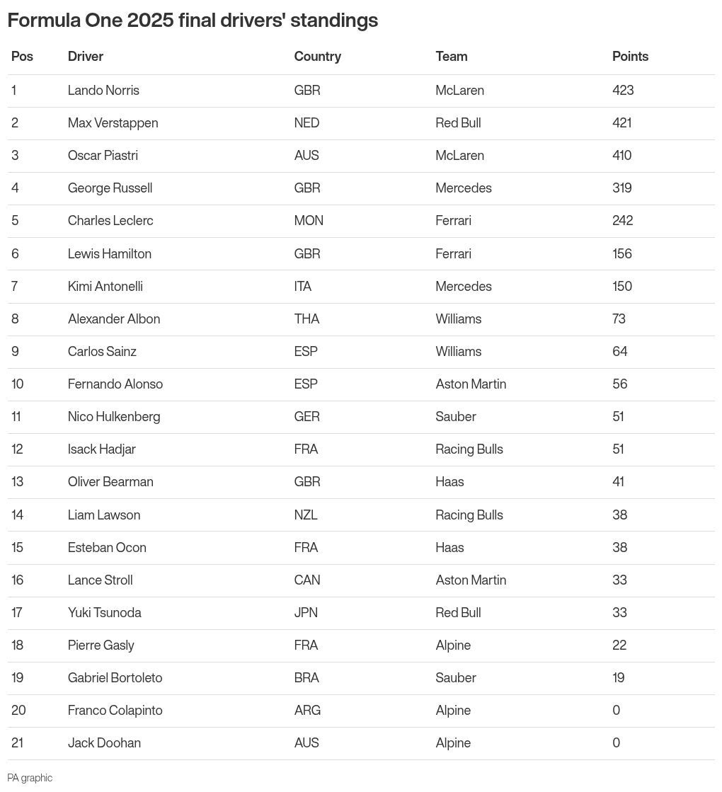 Norris got over the line to clinch his maiden crown after finishing third in Abu Dhabi to see off Max Verstappen – who won the race – by just two points in the championship standings.