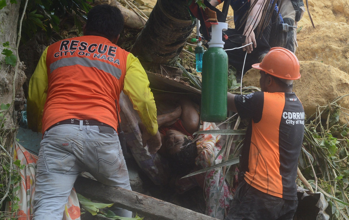 Rescue operations in Cebu were being hampered by rains and loose soil, the provincial government said.