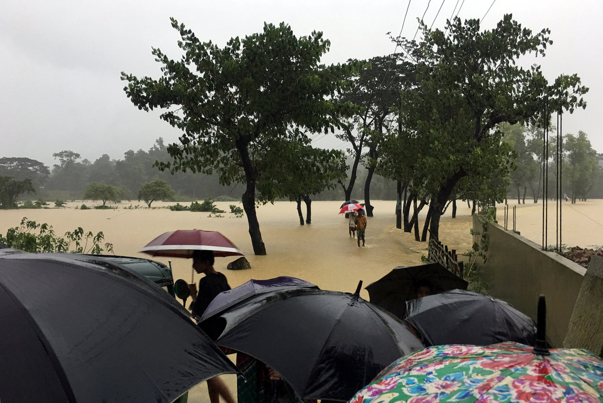 In the Rohingya refugee camps in Bangladesh, the market near the Modhuchara bamboo bridge began flooding in the early hours of the morning, said a refugee who lives there.