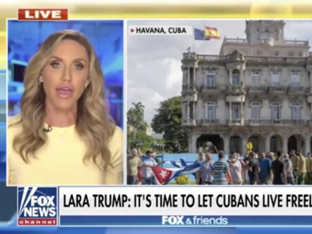 The wife of the former US president’s son, and a Fox News contributor, told viewers on Thursday that Cubans deserved to be freed from socialism – and that Mr Trump also deserves to be back on Twitter.