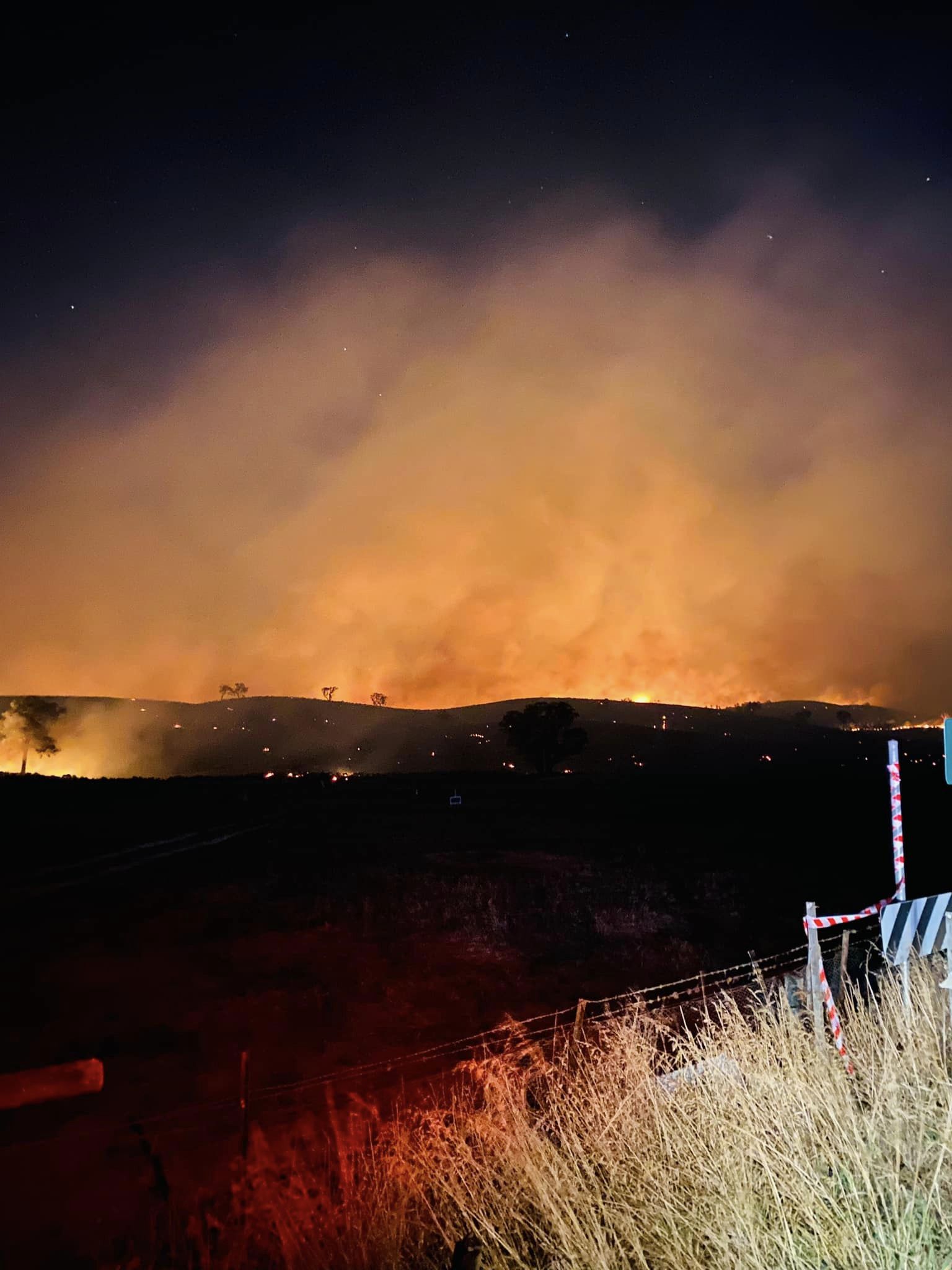 The fire is burning Jhob Drinkwater's merino stud, about four kilometres from Hill End.