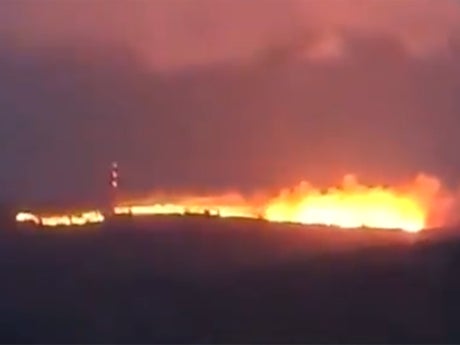 Photographs and footage showed a wide swathe of orange flames burning quickly, and the night sky was illuminated by the flames.