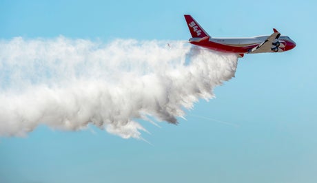 The Global SuperTanker can dump up to 19,200 gallons (72,678 liters) of water or flame retardant in six seconds and fly as low as 200 feet (61 meters) above the ground to do its work. It can be refilled in just 13 minutes.