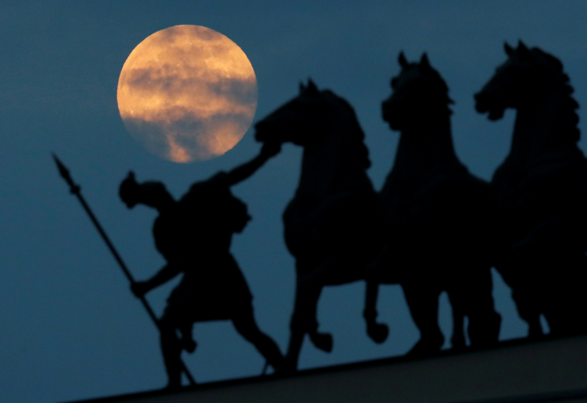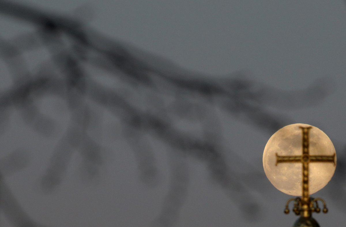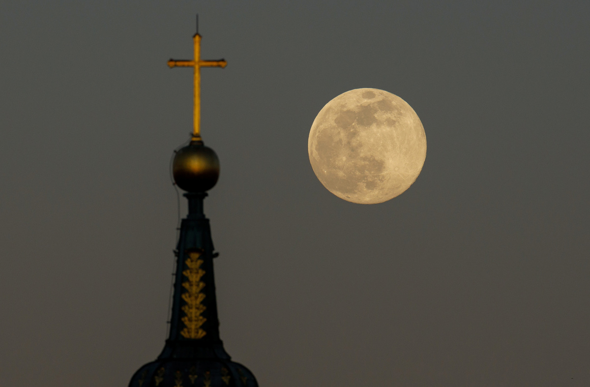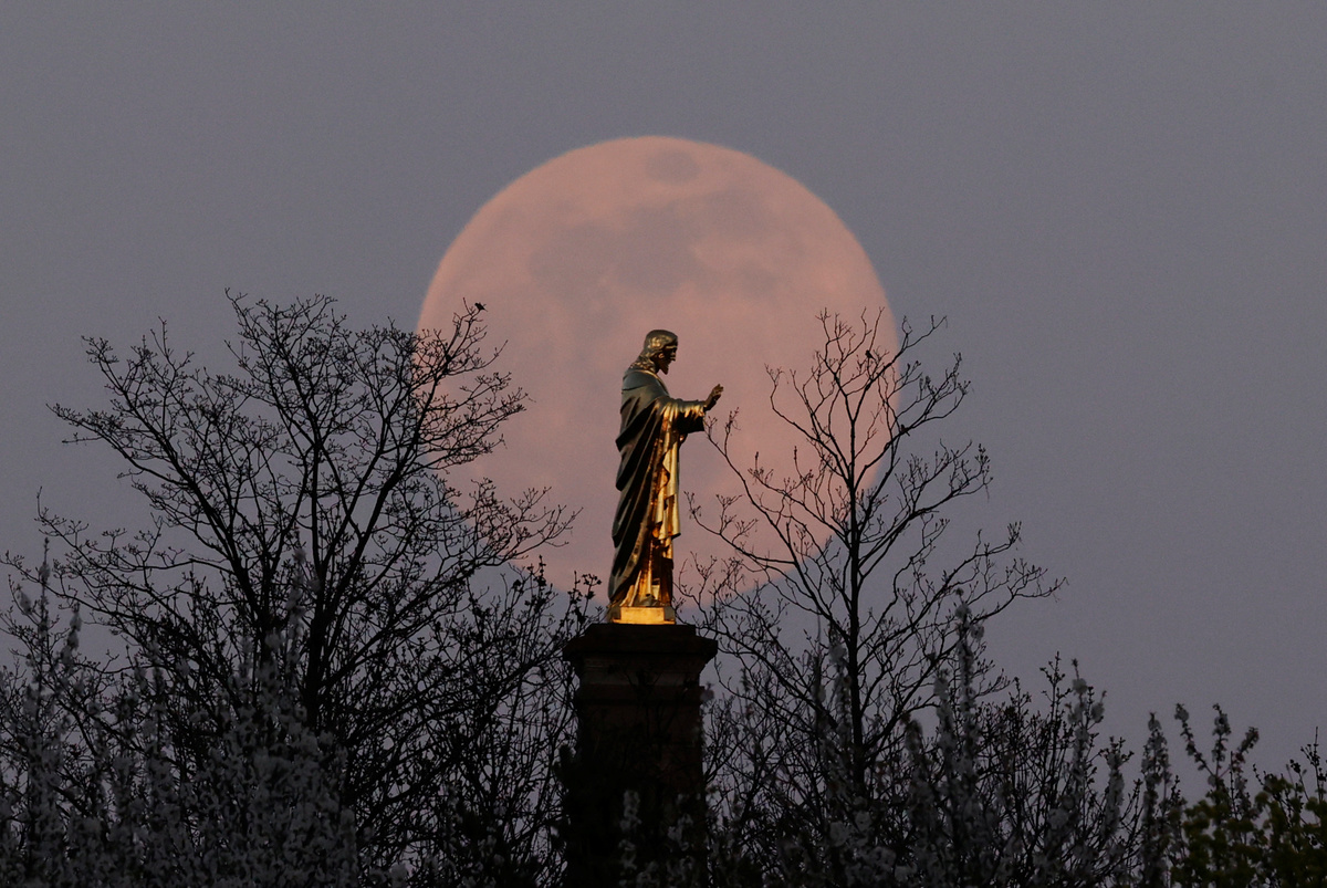 The Pink Supermoon, the biggest Supermoon of 2020, sets in Liepupe, Latvia, April 8, 2020. REUTERS/Ints KalninsA Supermoon rises over the town of Nunn, Colorado, U.S. April 7, 2020. REUTERS/Jim UrquhartAnibal uses his mobile phone on the roof of his house while a supermoon rises in the sky, in the city of Santiago, Chile, April 7, 2020. REUTERS/Ivan AlvaradoThe Pink Supermoon is seen over the city, during an astronomical event that occurs when the moon is closest to the Earth in its orbit, making it appear much larger and brighter than usual, as the spread of coronavirus disease (COVID-19) continues in Mexico City, Mexico, April 7, 2020. REUTERS/Henry RomeroAnibal uses his mobile phone on the roof of his house while a supermoon rises in the sky, in the city of Santiago, Chile, April 7, 2020. REUTERS/Ivan AlvaradoThe supermoon rises next the Empire State Building while it glows red in solidarity with those infected with coronavirus as the outbreak of the disease (COVID-19) continues in the Manhattan borough of New York City, as it is seen from Hoboken, New Jersey, U.S., April 7, 2020. REUTERS/Eduardo MunozThe Pink Supermoon rises over the Shard skyscraper in London in an astronomical event that occurs when the moon is closest to the Earth in its orbit, making it appear much larger and brighter than usual, in London, Britain, April 7, 2020. REUTERS/Dylan MartinezThe Pink Supermoon is seen behind a flock of birds during moonrise, in Arlington, Virginia, US, April 7, 2020. REUTERS/Tom BrennerThe Pink Supermoon rises by the Shard skyscraper in London in an astronomical event that occurs when the moon is closest to the Earth in its orbit, making it appear much larger and brighter than usual, in London, Britain, April 7, 2020. REUTERS/Dylan MartinezThe Pink Supermoon is seen rising behind a cross of Saint Mary's Church in Zagreb, Croatia, April 7, 2020. REUTERS/Antonio BronicA Pink Supermoon rises behind the Cevahir Sky City towers, the highest buildings in Skopje, North Macedonia, April 7, 2020. REUTERS/Ognen TeofilovskiThe Supermoon rises behind the Empire State Building while it glows red in solidarity with those infected with coronavirus as the outbreak of the disease (COVID-19) continues in the Manhattan borough of New York City, as it is seen from Hoboken, New Jersey, U.S., April 7, 2020. REUTERS/Eduardo MunozThe Pink Supermoon rises over Zagreb Cathedral, in Zagreb, Croatia, April 7, 2020. REUTERS/Antonio Bronic TPX IMAGES OF THE DAYThe Pink Supermoon is seen next to the Buenos Aires' planetarium lights in an astronomical event that occurs when the moon is closest to the Earth in its orbit, making it appear much larger and brighter than usual, in Buenos Aires, Argentina, April 7, 2020. REUTERS/Agustin MarcarianThe pink supermoon rises behind a tower of the Frankfurt Gate in Berlin, Germany April 7, 2020. REUTERS/Annegret HilseA supermoon rises over the U.S. Capitol, Washington Monument and Lincoln Memorial in Washington, U.S. April 7, 2020. REUTERS/Jonathan ErnstThe pink supermoon rises in Riyadh, Saudi Arabia April 7, 2020. REUTERS/Ahmed YosriThe pink supermoon rises behind the Chariot of Glory sculptural group in central Saint Petersburg, Russia April 7, 2020. REUTERS/Anton VaganovThe supermoon shines over the Central Business District as cars move along a thoroughfare during evening rush hour in Beijing, China, April 7, 2020. Picture taken with a slow shutter speed. REUTERS/Thomas PeterA waxing gibbous moon rises behind the Burj Khalifa, the world's tallest building, ahead of the 'Super Pink Moon', in Dubai, United Arab Emirates, April 7, 2020. REUTERS/Christopher PikeThe pink supermoon rises behind the Sacre-Coeur du Horn statue depicting the Christ figure during Holly Week in Wolxheim, near Strasbourg, France April 7, 2020. REUTERS/Christian HartmannThe Pink Supermoon rises over the city of Caracas in an astronomical event that occurs when the moon is closest to the Earth in its orbit, making it appear much larger and brighter than usual, in Caracas, Venezuela April 7, 2020. REUTERS/Manaure QuinteroThe pink supermoon rises over the city of Rome in an astronomical event that occurs when the moon is closest to the Earth in its orbit, making it appear much larger and brighter than usual, in Rome, Italy, April 7, 2020. REUTERS/Alberto LingriaThe Pink Supermoon is seen rising behind a cross on the domes of St Alexander Nevsky Cathedral in Sofia, Bulgaria, April 7, 2020. REUTERS/Stoyan NenovThe pink supermoon, the biggest full moon of 2020, is seen from in Valletta, Malta April 7, 2020. REUTERS/Darrin Zammit Lupi