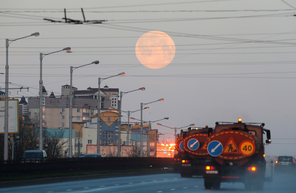 The Pink Supermoon is seen in Minsk, Belarus April 8, 2020. REUTERS/Vasily Fedosenko