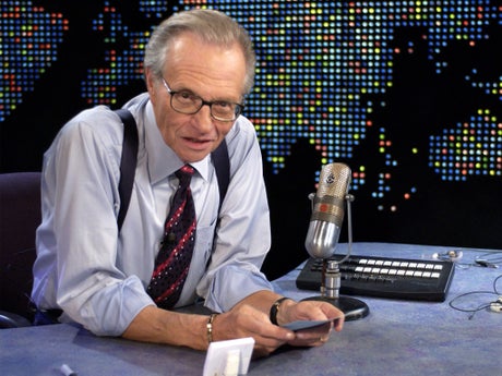 A longtime nationally syndicated radio host, from 1985 through 2010 he was a nightly fixture on CNN, where he won many honors, including two Peabody awards. King conducted an estimated 50,000 on-air interviews. In 1995 he presided over a Middle East peace summit with PLO Chairman Yasser Arafat, King Hussein of Jordan and Israeli Prime Minister Yitzhak Rabin.