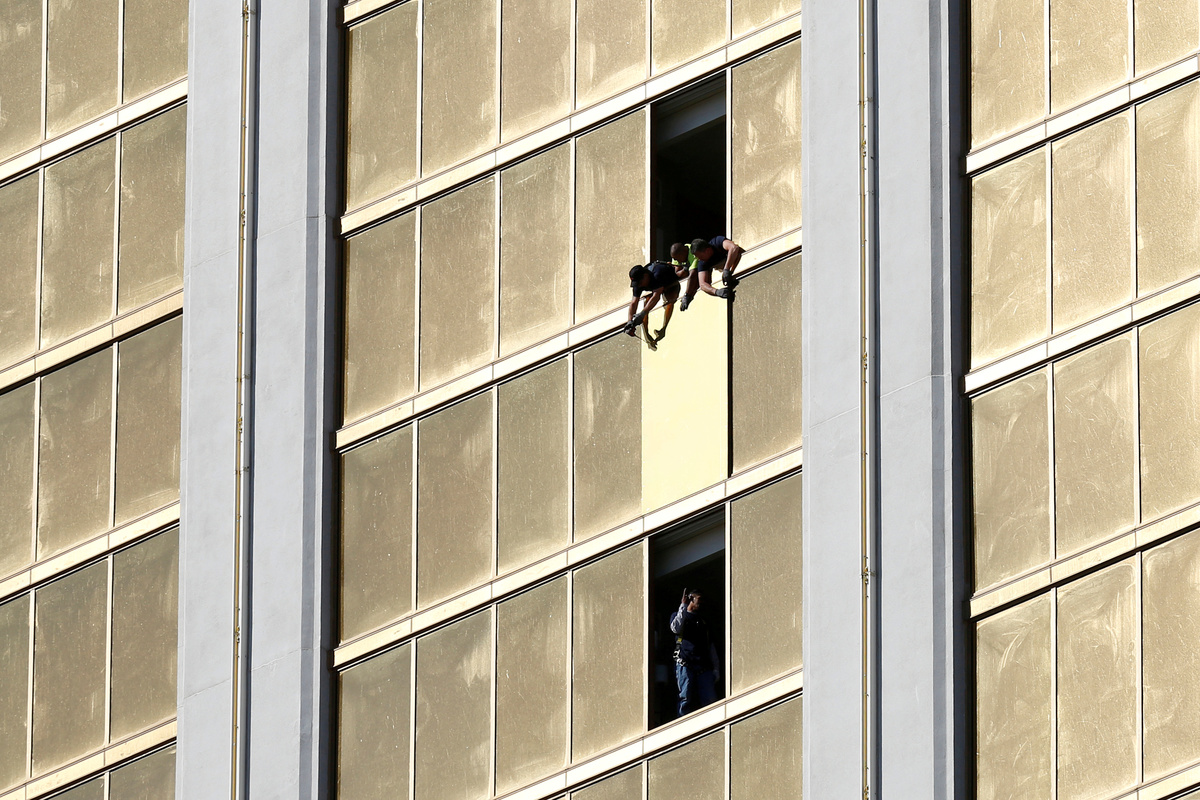 Las Vegas police officers were with armed hotel security officers in the building when Campos, who was checking an open-door alarm also on the 32nd floor, first reported that shots were fired over the radio, MGM said. Both groups immediately responded to the 32nd floor.